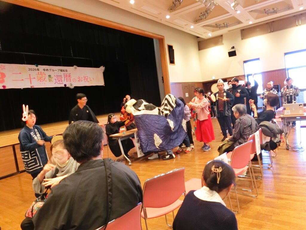 私は、お祝いしてもらいました。式典では、抱負を言ったり、記念品もらいました。